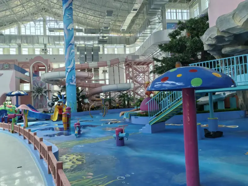Il parco acquatico al coperto offre attrazioni emozionanti come una grande piscina a onde, un fiume lento, uno scivolo gigante a imbuto, uno scivolo arcobaleno e uno scivolo a farfalla, oltre a strutture adatte ai bambini come mini scivoli d'acqua e piccoli scivoli arcobaleno. Inoltre, ci sono 33 diverse piscine termali a tema sia interne che esterne, insieme a una piscina a sfioro e una piscina termale.